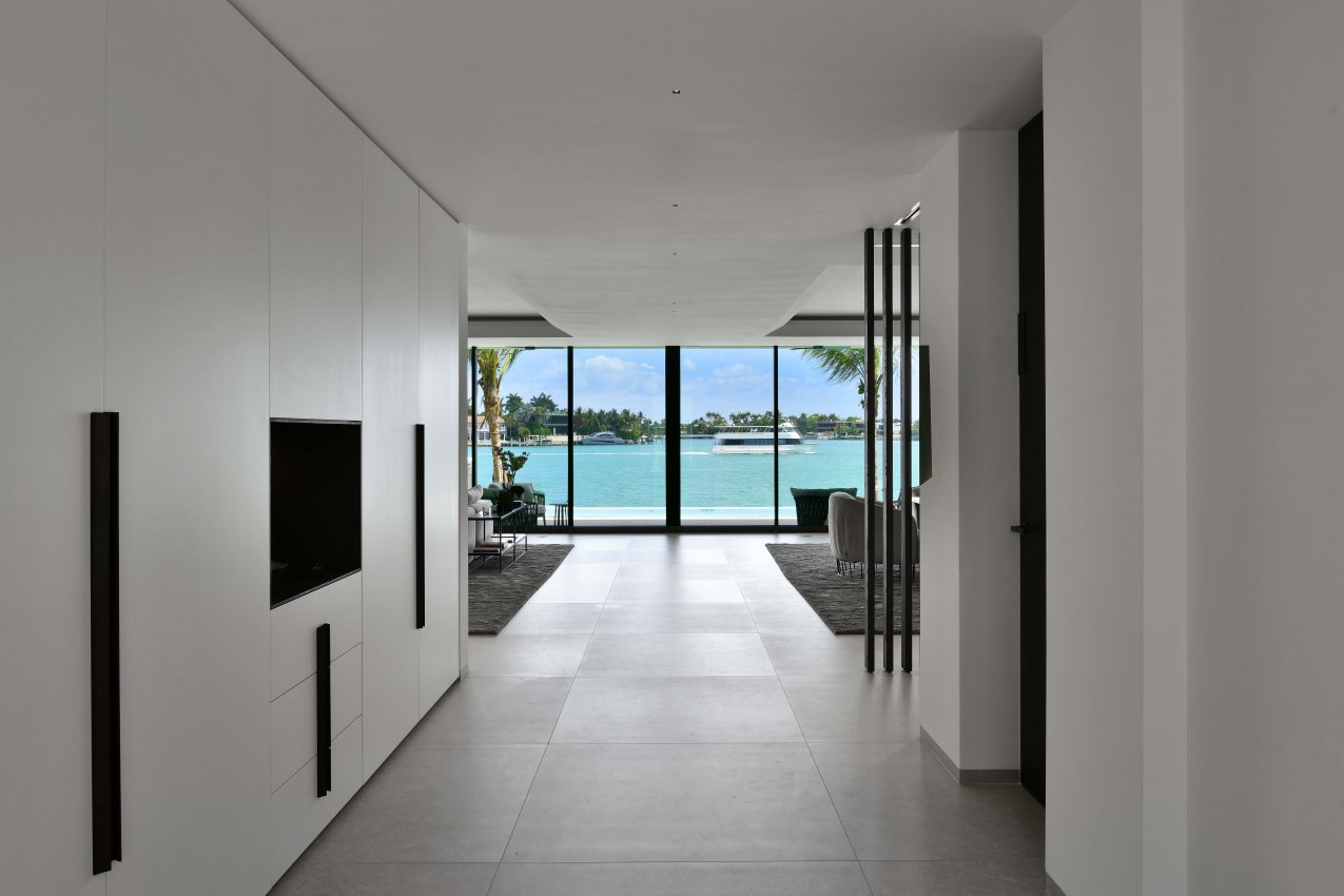 Die Luxuriöse Villa liegt auf einer der exklusiven Inseln in Miami, mit eigener Uferpromenade, einem privaten Dock und direktem Zugang zur Biscayne Bay. Dieses moderne Gebäude am Wasser spiegelt den Miami-Lifestyle durch hochwertigste Materialien und klare Formensprache wider.